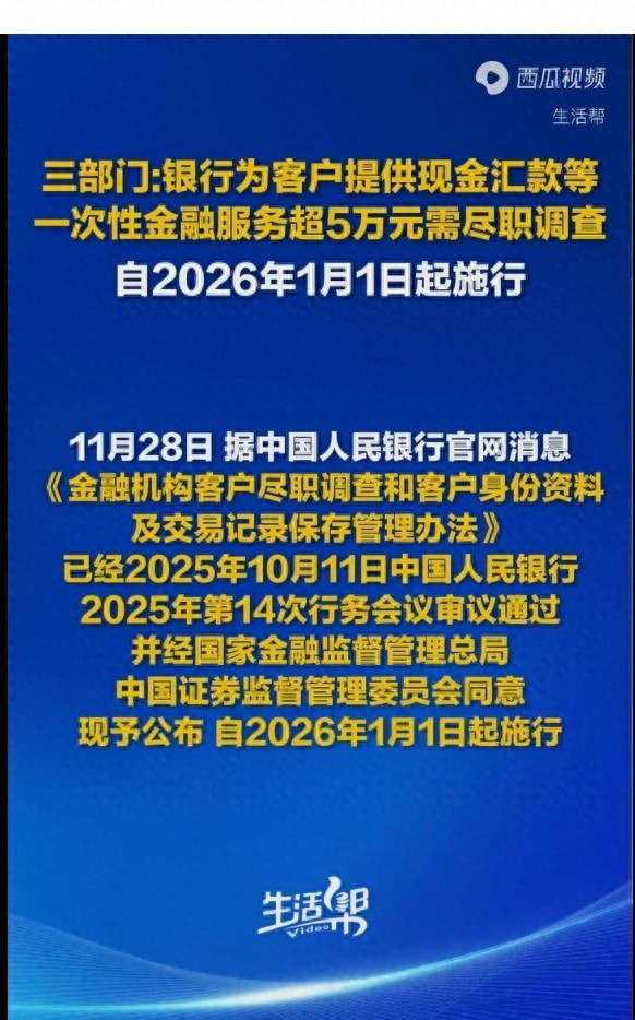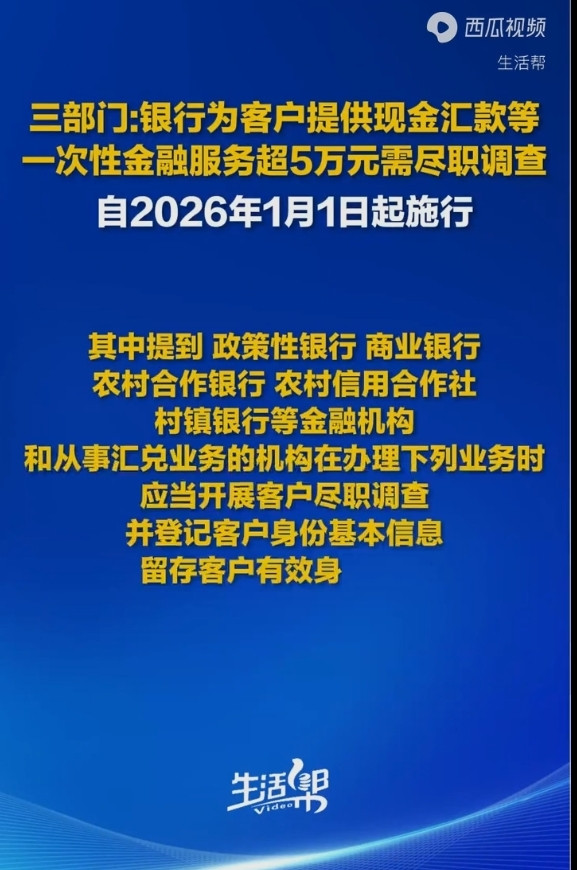 不过话说回来,这个规定要到2026年才正式实施,具体怎么操作,到时候银行应该会有更详细的指引。现在咱们先知道有这么个事儿,到时候真需要办理大额业务,也不会觉得太突然。